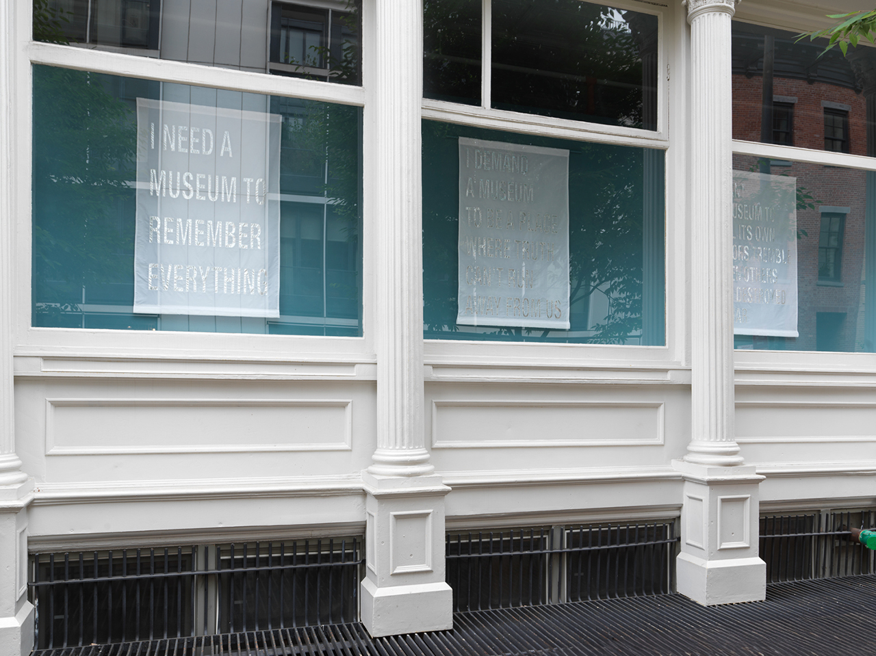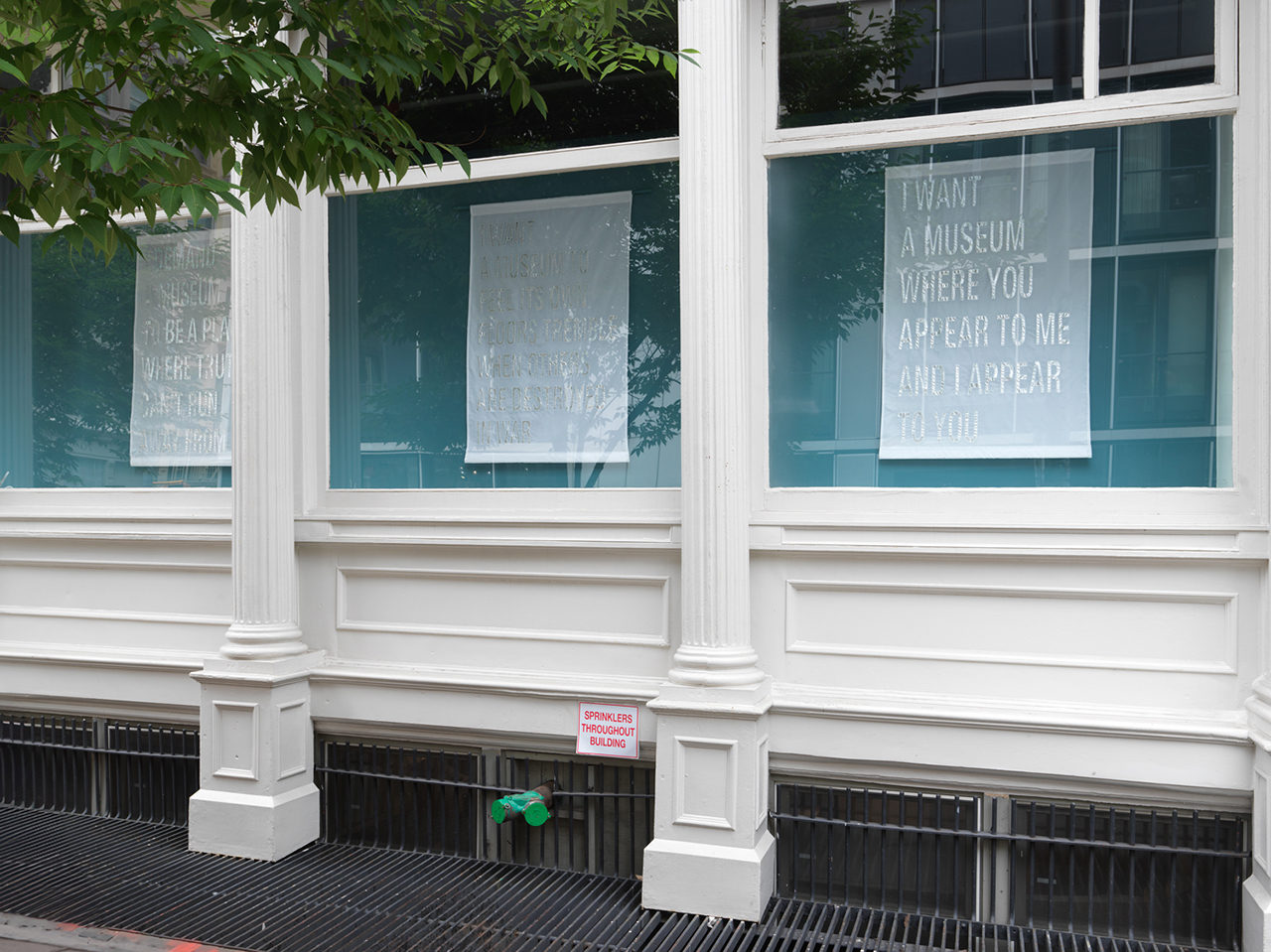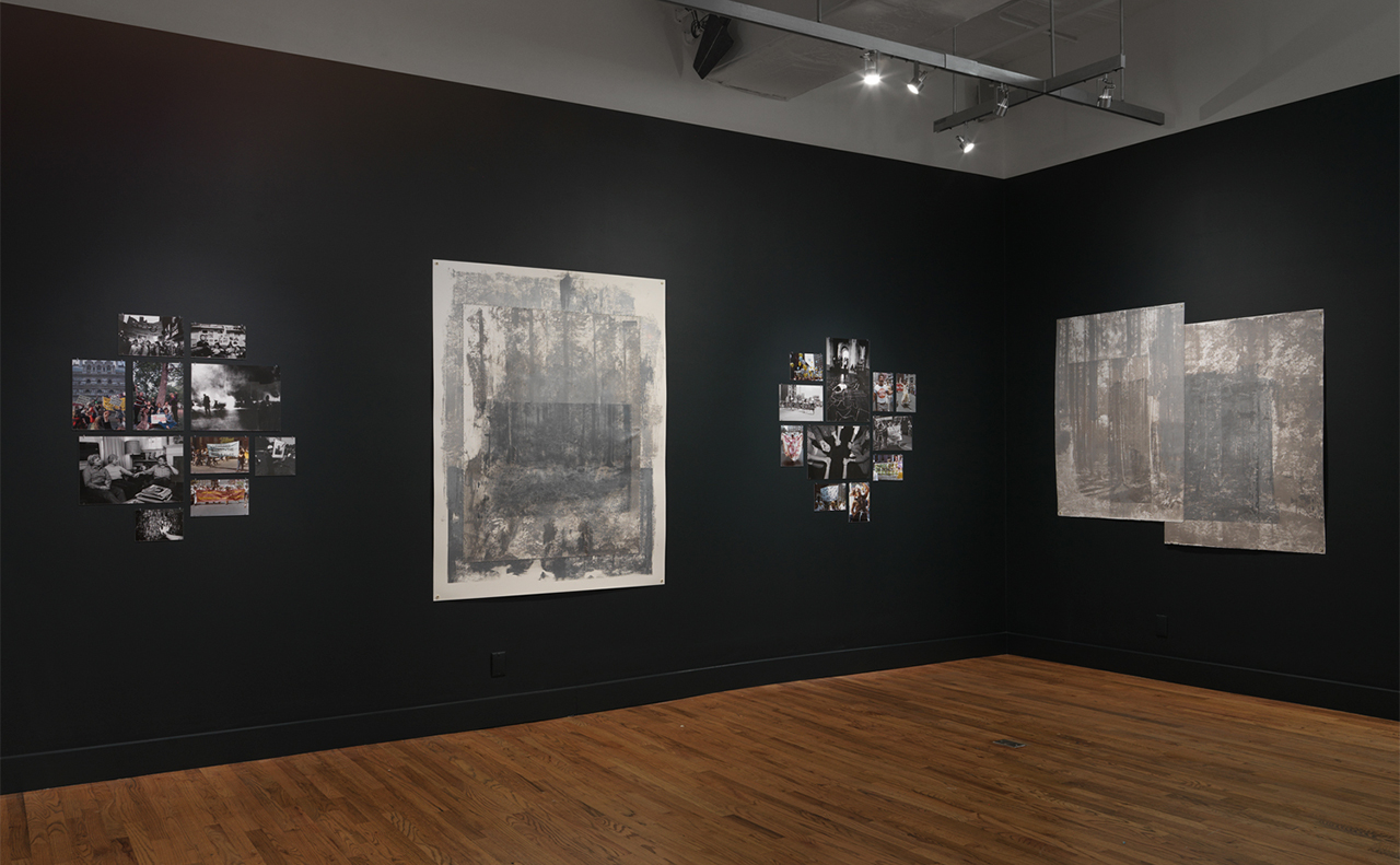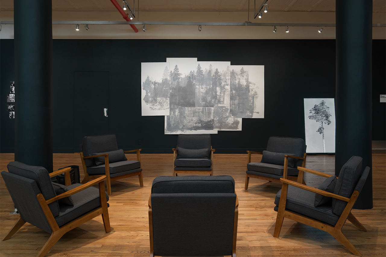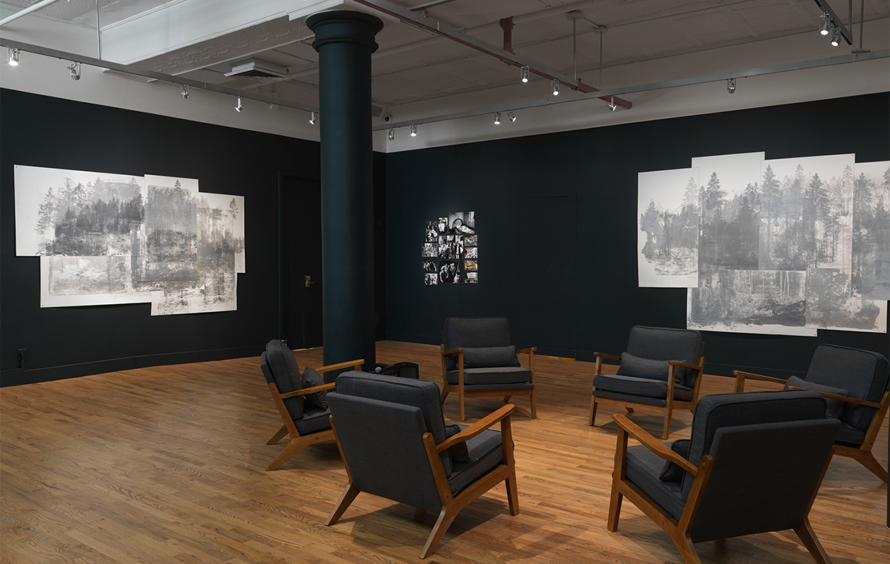 Within the gallery are two new bodies of work: a promise of lightning, a group of quilted and embroidered multilayered silkscreens; and breathturns, a multi-screen video installation. The imagery for both works is taken from the Black Forest in southern Germany, where the artist grew up and experienced her own queer formation. The works are interspersed with images of activist organizing and protests culled from the collection of the Leslie-Lohman Museum, and are accompanied by a newsprint publication and newly released online database. The Future is Now: An Impossible Archive of Queer Advocacy and Resistance brings together information on more than one thousand LGBTQIA+ historic and contemporary organizations in the United States gathered from online and offline archives, books, research papers, primary sources, and oral histories. These organizations engage(d) in community building and education; social, cultural, and political advocacy; and direct action. Conceived as an urgent and timely response to the current repressive political environment and the renewed violent culture wars waged on the LGBTQIA+ community, The Future is Now projects a resilient landscape of possibility, accomplishments, and community within which we can organize, advocate, and resist today. The archive can only ever be incomplete, holding both that which we can remember or research, and that which lies as intangible sustenance below a queer collective consciousness. Viewers will be able to take home a newsprint first-edition of The Future is Now, and are invited through an open submission form to contribute to this collective project of recording queer histories.